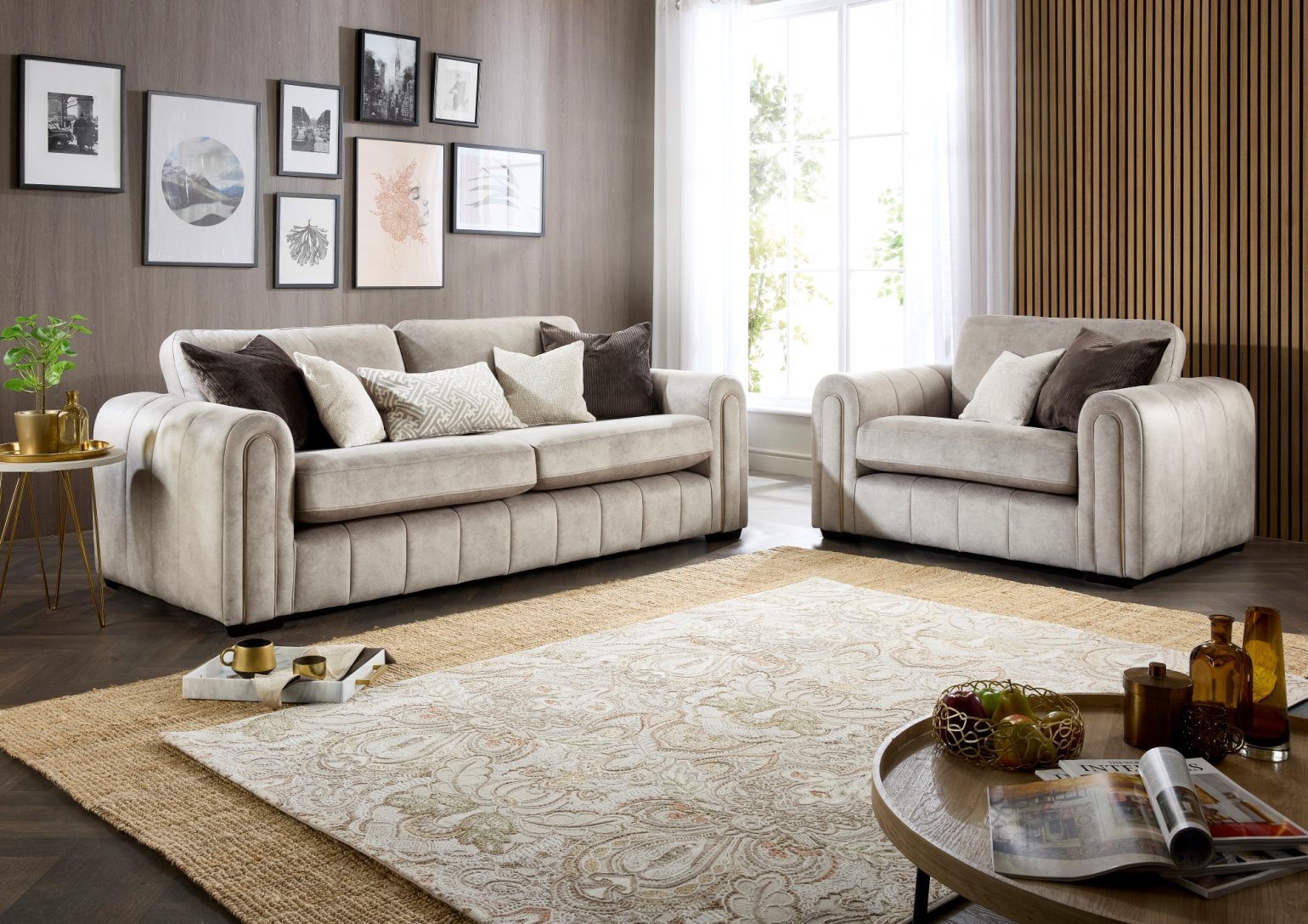 The Allesandra collection epitomises everything Glamourous. With its elegant lines, plush sumptuous body fabric and sophisticated accent cushions, all finished off with rich piping, the range adds the perfect touch of luxury to any room. The front border is quilted offering drama and comfort and its generous proportions allow you to chill out in style.