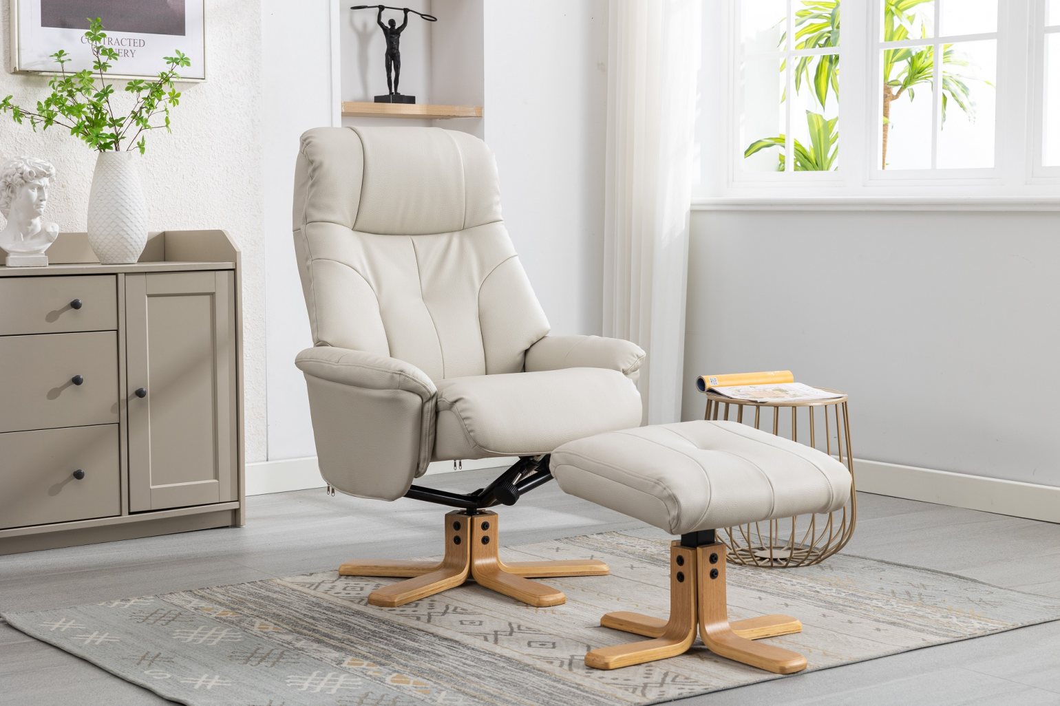 The Bath recliner chair and free matching footstool compliments any modern-day living space. Upholstered in a variety of contemporary colours, it benefits from a 360-degree swivel and an easy to use recline mechanism which is completed with a sumptuous back for added comfort and support.