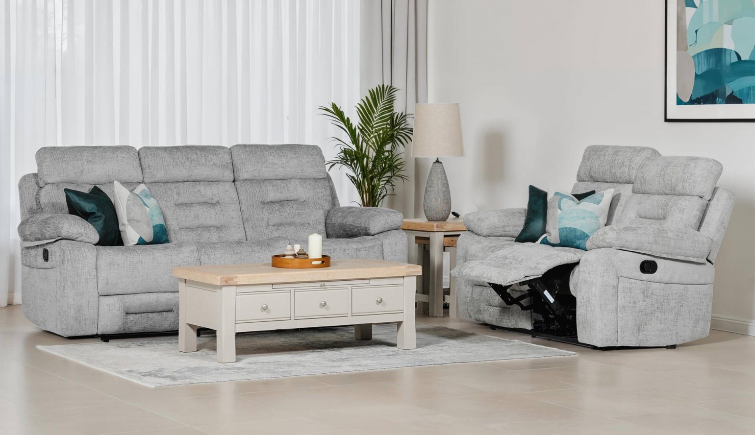 The leoana manual recliner range comes in a choice of grey or latte fabric. It provides ultimate comfort with a manual recliner, pocket sprung seating, lumbar support and padded armrests. Perfect for relaxing in style, the range is designed for both support and luxury.